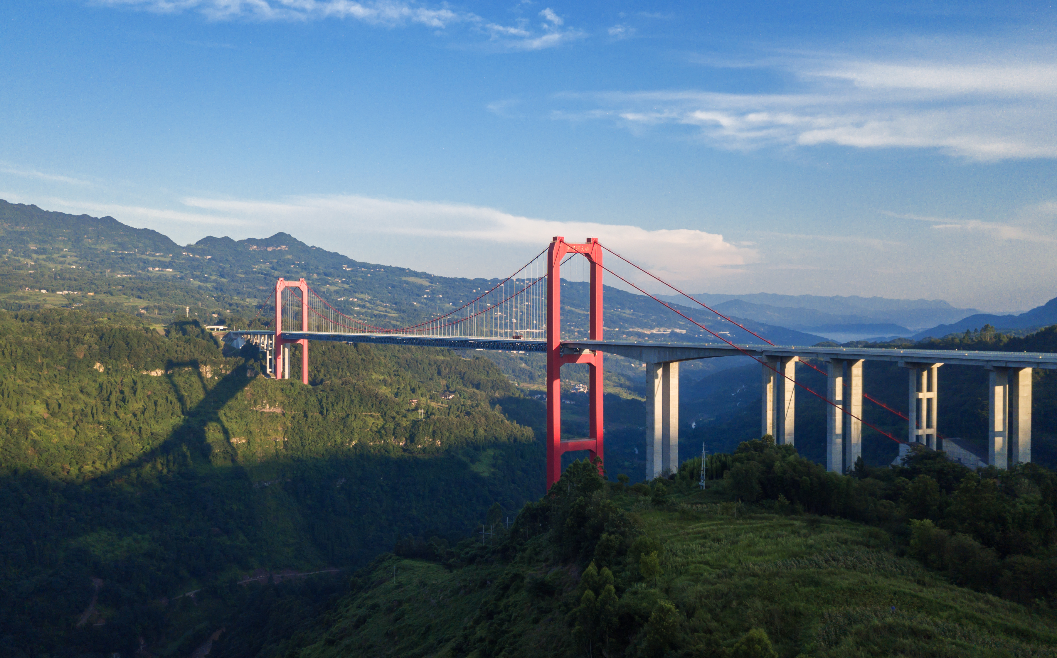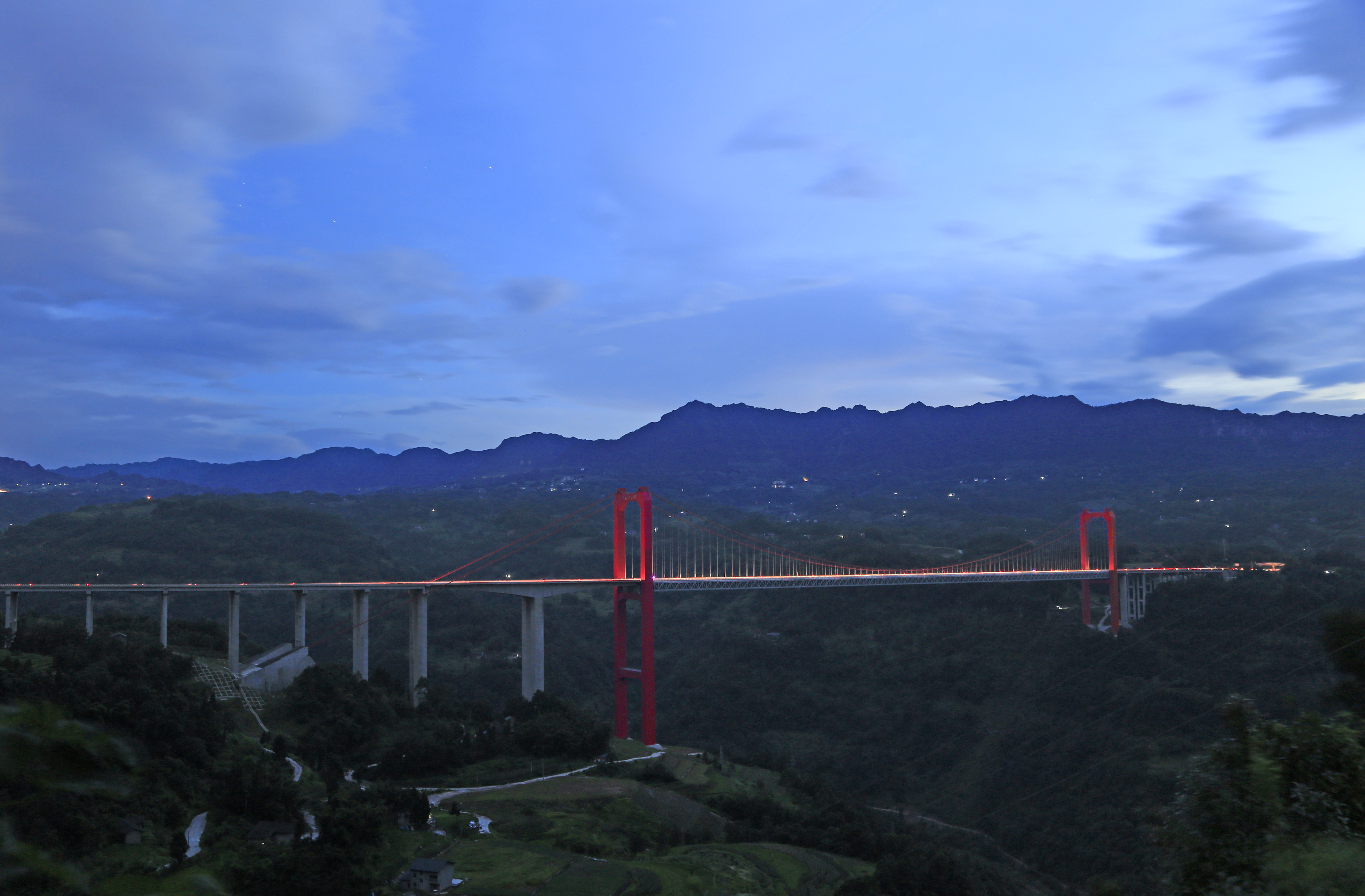 筍溪河大橋橋梁全長1578米,主橋?yàn)?60m鋼桁加勁梁懸索橋,橋面寬24.5米,最大索塔高190.65米,橋面距河谷達(dá)290米,是重慶市第一高橋,重慶市首座山區(qū)大跨度懸索橋、最大跨度鋼桁加勁梁懸索橋。大橋于2015年7月1日開工建設(shè),2018年6月29日建成通車,2019年獲得“中國鋼結(jié)構(gòu)金獎”榮譽(yù)。